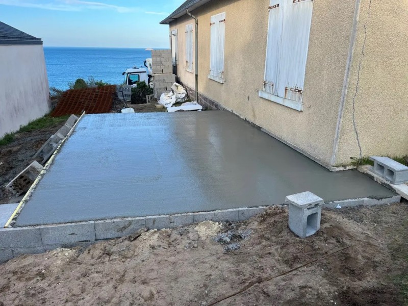 La pose de fondations est une étape cruciale lors d'un chantier d'extension de maison. Ici, nous avons terrassé la surface nécessaire puis avons construit les murs de soubassement. Nous avons ensuite mis en place les semelles de fondation avant de procéder au coulage de la dalle béton.